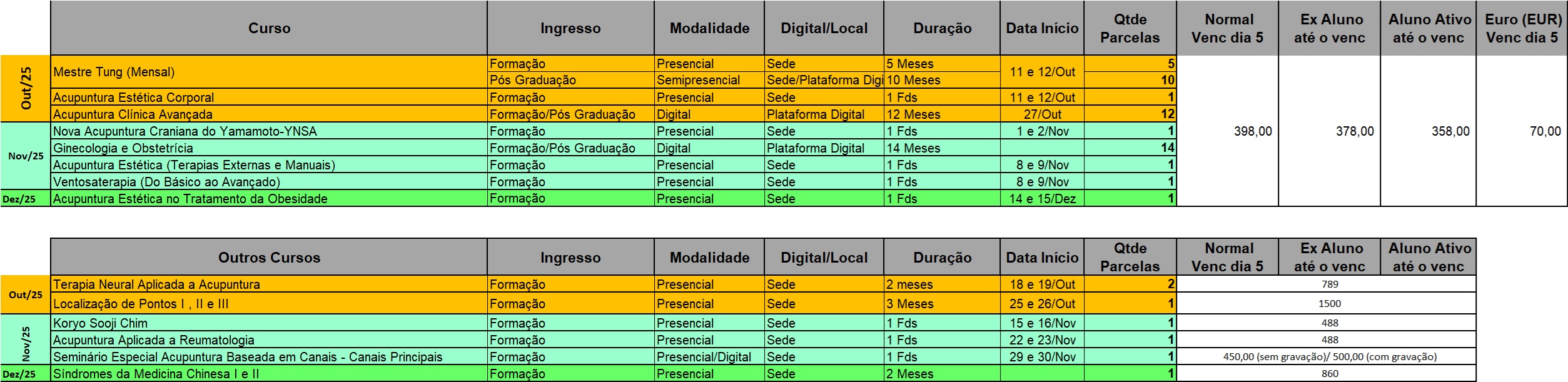 - Para cursar como Pós Graduação: Necessário Graduação na área da saúde e certificado de curso de acupuntura ou indicação de estar cursando