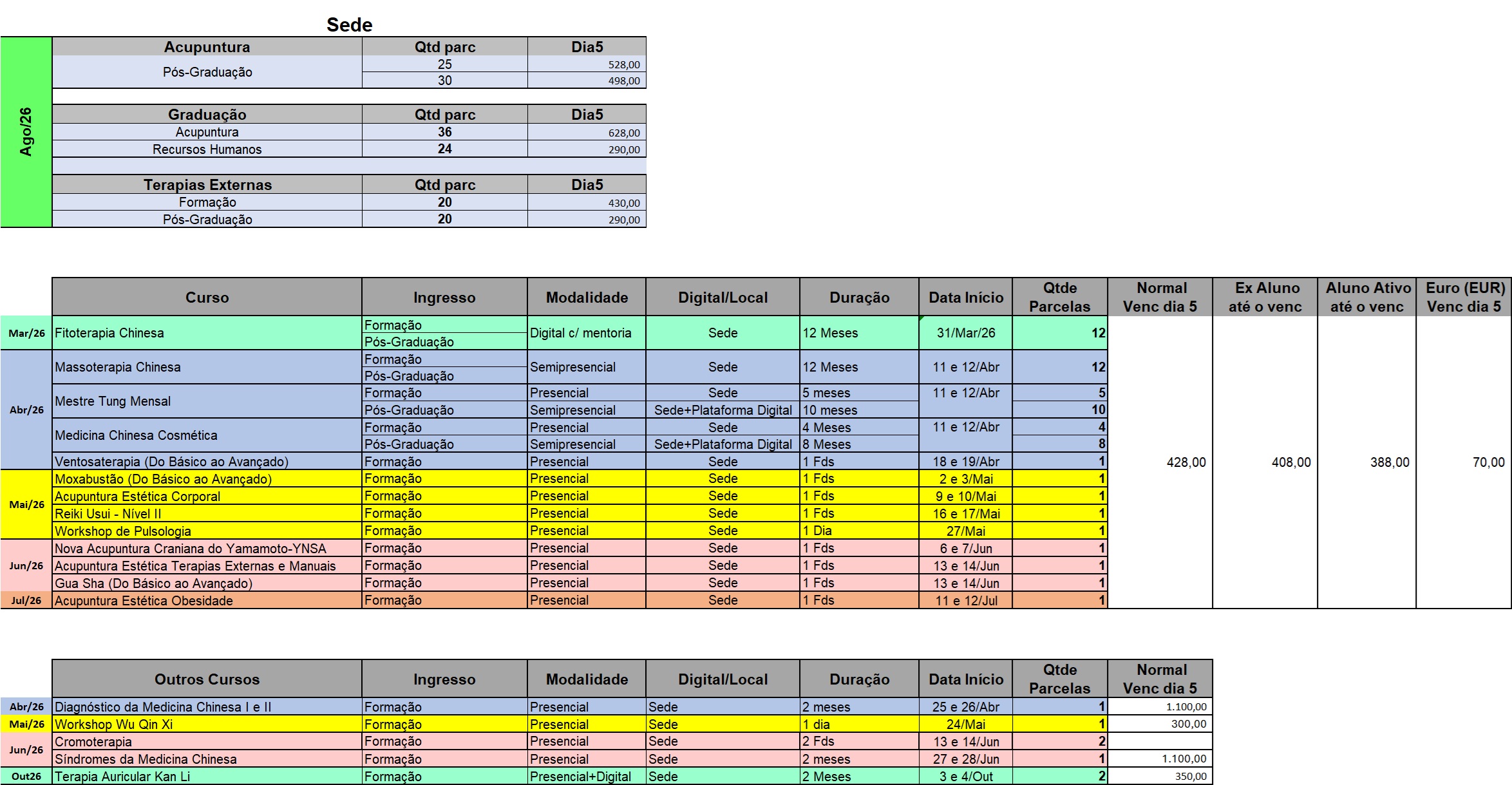 - Pós-graduação Lato Sensu em Medicina Chinesa em Reprodução e Infertilidade