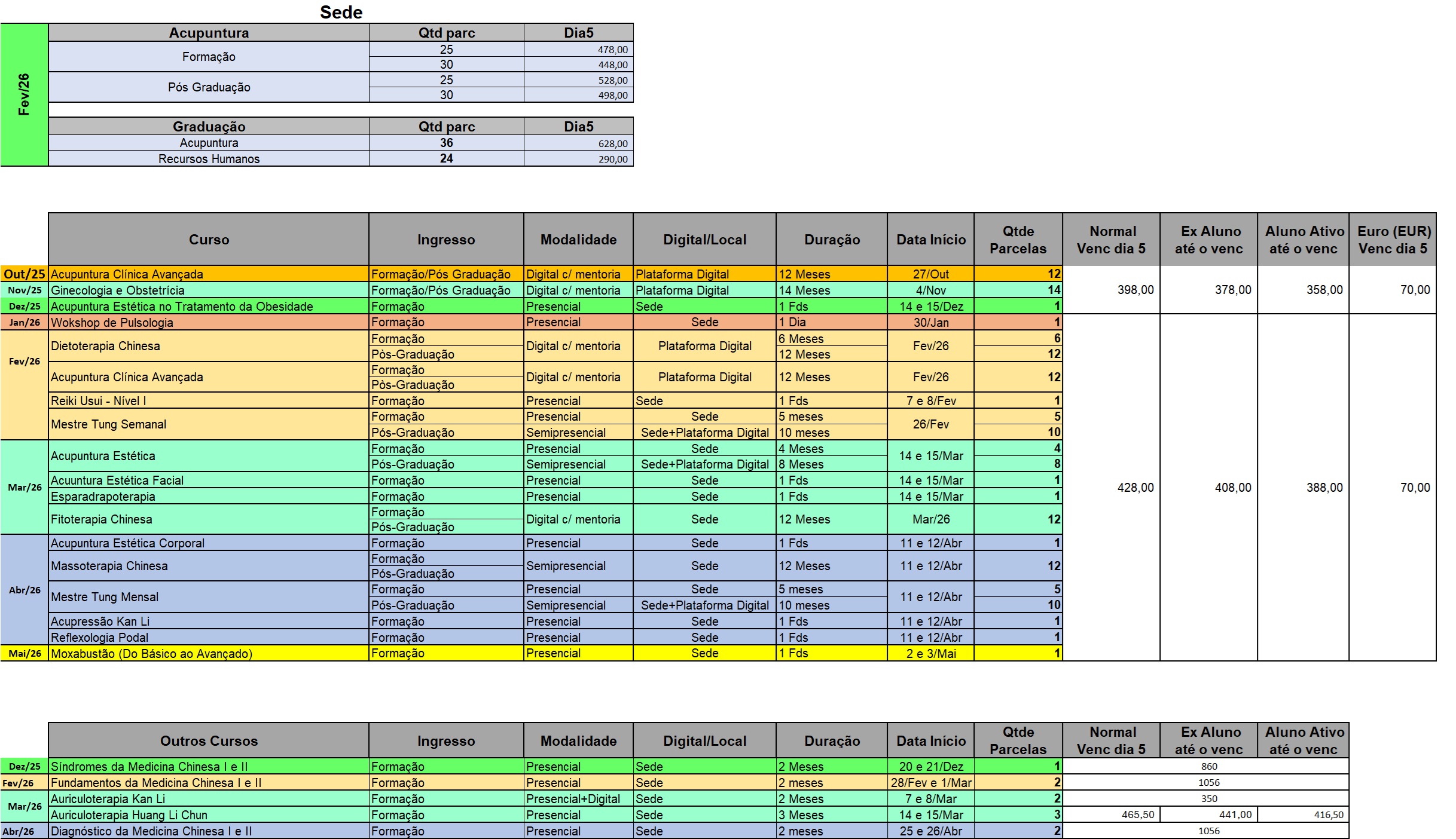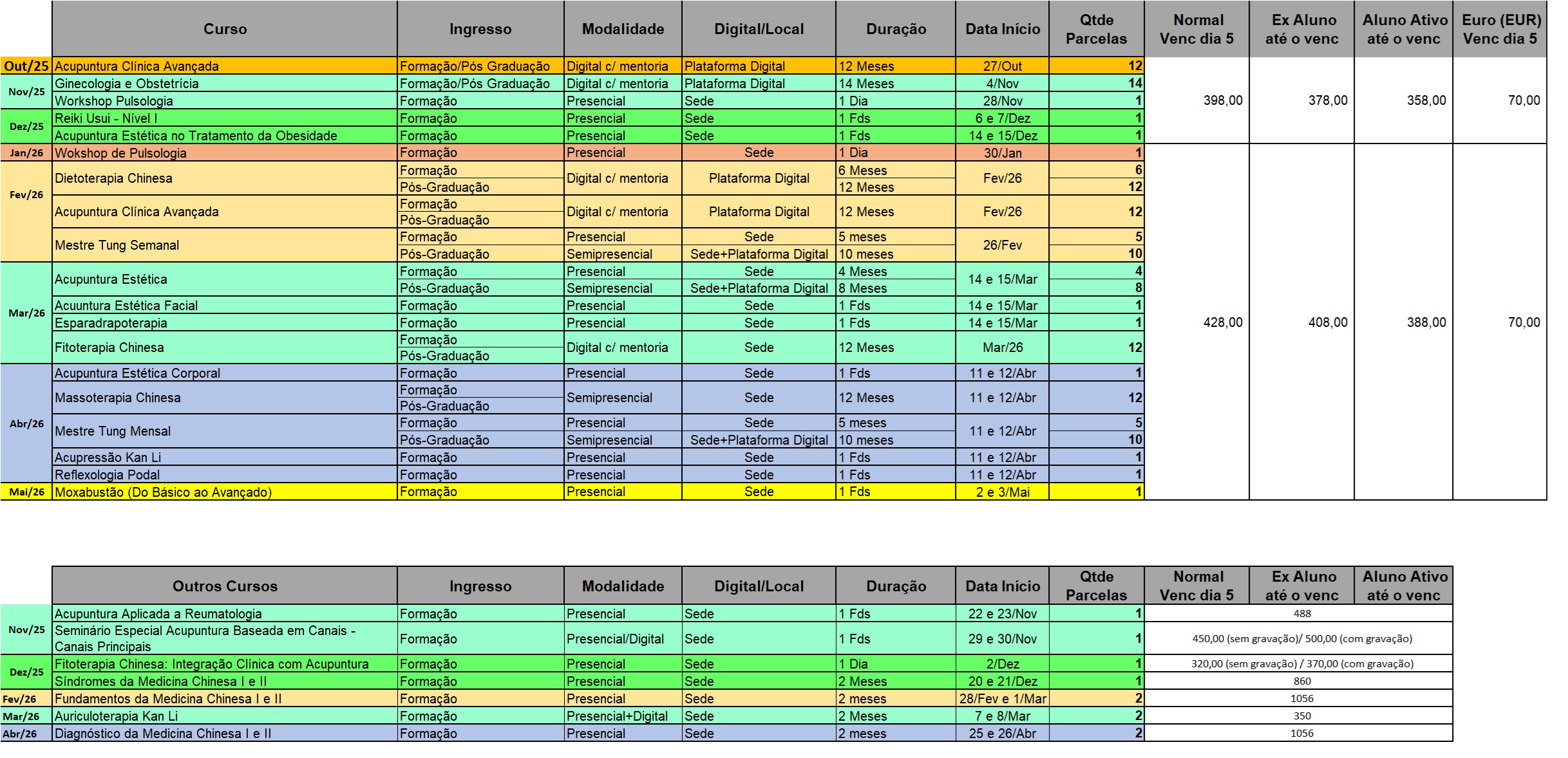 - Pós-graduação Lato Sensu em Medicina Chinesa em Reprodução e Infertilidade